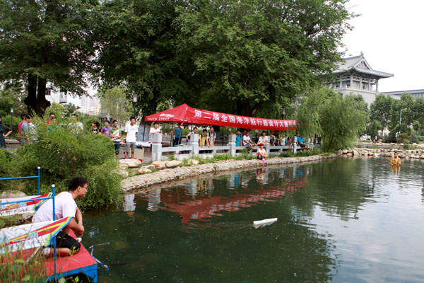 下午3时左右,各参赛选手陆续带着自己的竞速小船到达比赛场地,并在工作人员的组织下完成了对船只的检查、选手签到、船只调试等赛前工作。3时20分,李凤来老师、李蕊老师以及张学超老师莅临了现场,比赛也随之开始。