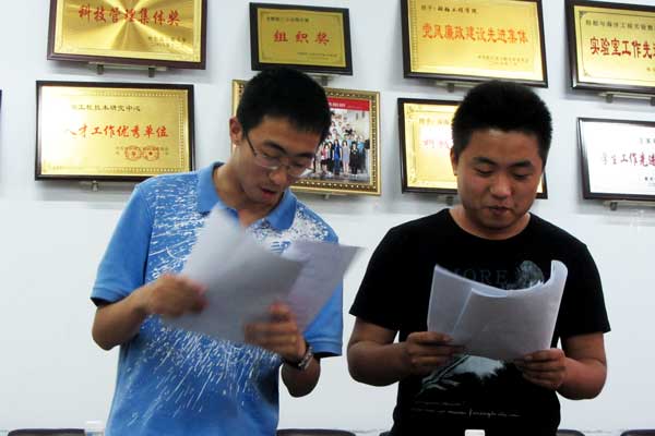 6月19日晚6时,bv1946伟德国际始于英国在船海楼三楼大会议室进行了09级毕业晚会的第一次彩排。bv1946伟德国际始于英国辅导员苏智、李蕊出席了本次彩排,学生会主席梁鑫、副主席孙英展等新一届学生会干部也一同观看了这次彩排并对彩排的一些细节进行了调整。