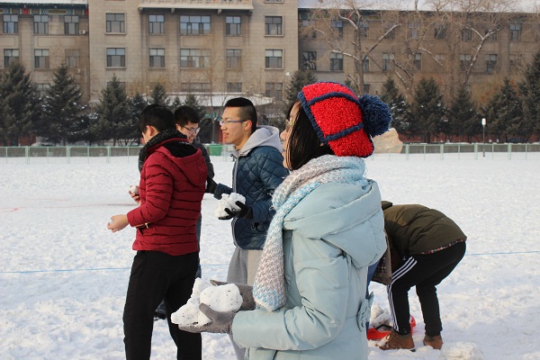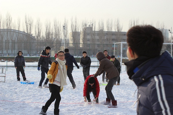 本次比赛参赛队伍包括2015级同学和2014级同学。比赛分为两个部分,首先进行拉雪橇比赛,比赛开始后,同学们洋相百出却乐在其中,没有参加的同学在比赛后也踊跃尝试,大一同学们明显操作不当,相比起来大二同学们更加熟练和稳妥。第二轮比赛是打雪仗,双方在各自区域内用雪球打中对方,坚持到最后的为胜,到这时女生们也激发了血性,抛弃了平日里的矜持形象,奋勇抵抗,坚持到最后。