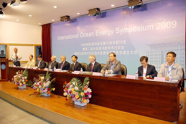 开幕式在学校逸夫馆东安报告厅举行。中国可再生能源学会秘书长李宝山,国家科技部高新司处长郑方能,中国科学院国家海洋局第二海洋研究所苏纪兰院士,国际能源署海洋能系统执委会主席约翰·胡克比博士,黑龙江省人大原副主任、我校朱典明教授,科技部高新技术中心处长陈硕翼,中国海洋石油总公司新能源投资有限责任公司副总经理左柯庆,中国海洋协会国际合作工作委员会主任、浙江省海洋学会海洋遥感与信息专业委员会主任黄韦艮教授等出席开幕式。