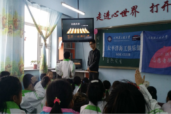 12月22日下午一时,bv1946伟德国际始于英国小红帽志愿服务队在香坊区通乡小学“七彩小屋”开展“七彩课堂”活动。小红帽综合部副部邢森林带领太平洋海工俱乐部主席杜世欣、宣传部副部刘德正参加了本次活动。此次“七彩课堂”的主题是“自然灾害”。