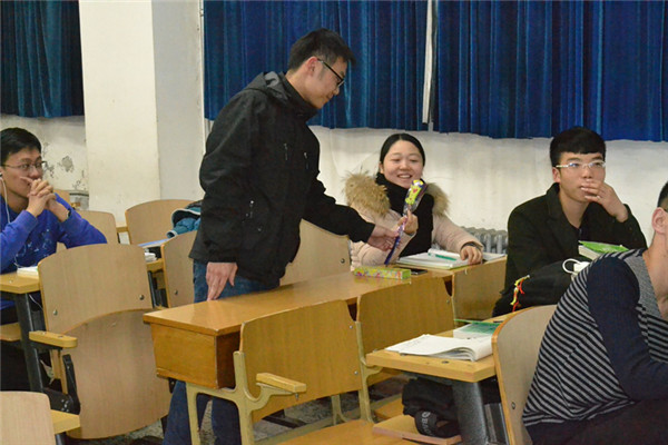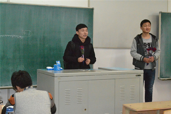 罗斌率先给大家送上祝福,他希望权益部所举办的活动能真正给同学们送去温暖,并表达了增进学院男女生关系的殷切期望。之后班长们将花朵送到每个女生的手里,女生们在收到祝福与鲜花后都特别开心。