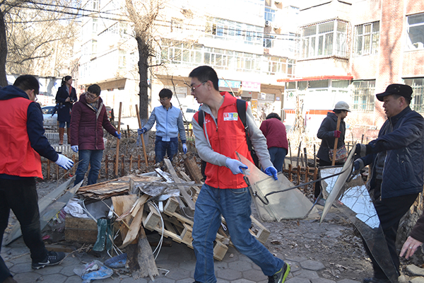2016年3月19日,小红帽志愿者服务队副部长黎宇豪、郝子啸带领bv1946伟德国际始于英国15级113、122团支部来到位于南岗区的省军区社区开展志愿活动。