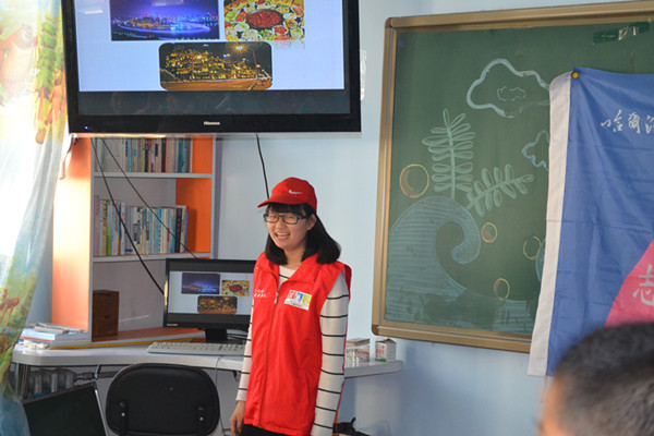 下午一时,“小红帽”志愿者服务队综合部副部黎宇豪准时带领20150121团支部来到通乡小学“七彩小屋”,此次“七彩课堂”的主题是“文化大观园”,20150121团支部为小朋友们介绍世界给地不同地区不同民族的不同文化。为了使课堂效果进一步提高,20150121团支书王奕峦首先通过向小朋友们提出一系列的问题将课堂主题逐渐引入世界各地的文化形势。紧接着,王奕峦通过文字、图片以及动画视频向小朋友们介绍了全世界各地风格迥异的文化习俗。小朋友们都被各式各样的动画人物、人文地貌深深吸引。