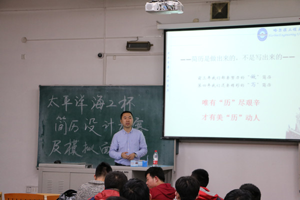 4月21日,太平洋海工俱乐部在21b教学楼113教室举办简历设计及模拟面试大赛宣讲会,本次宣讲会旨在为大家普及简历设计方面的相关知识,以便有更多的人参加到之后的简历设计大赛当中,本次活动吸引了来自多个院系的30余名同学参加。担任本次宣讲会主讲嘉宾的是船舶学院学生工作办公室主任苏智老师,太平洋海工俱乐部主席杜世欣参加了本次宣讲会。