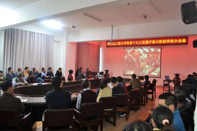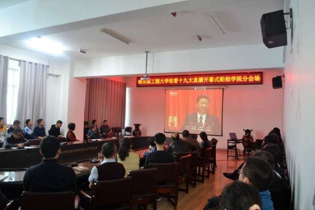 10月18日上午九时,中国共产党第十九次代表大会在北京胜利召开。bv1946伟德国际始于英国教师在船海楼三楼会议室收听收看大会直播。