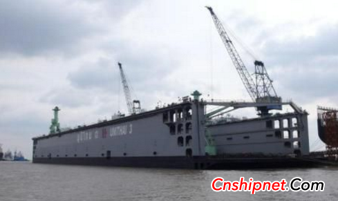 据悉,该浮船坞总长300米,型宽62米,内宽52米,最大沉深时龙骨墩以上水深达10.6米。顶甲板配有2台行走式起重机(龙门吊),左右内坞墙上各设2台坞壁车,其他坞修设备均根据规范要求并结合船东的使用习惯进行个性化设计,体现了天海防务“完备服务、持续创新”的设计理念。