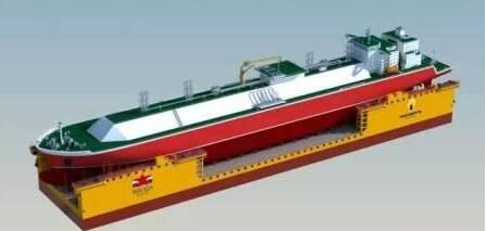 40000吨举力浮船坞由上海船舶设计研究院(SDARI)设计总长280米,型宽62米,主要用于长300米、宽51米的大型船舶,或长118米、宽70米的“MOSS”型钻井平台从岸上滚装上坞后,转移到就近深水区,通过下沉起浮出坞,以及船舶海工产品在总厂与分厂间短途沿海岸航线转移运输。