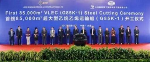 2017年6月15日,由大连船舶重工集团海洋工程有限公司为JHW公司建造的全球首艘85000立方米超大型乙烷乙烯运输船(VLEC)顺利开工。Jaccar集团董事长 Jacques de Chateauvieu,JHW公司执行董事王建平、总经理朱胜勋,大船集团领导刘征、杨志忠以及能源公司、银行租赁、中信保、DNV GL船级社等各界来宾应邀出席了开工仪式。
