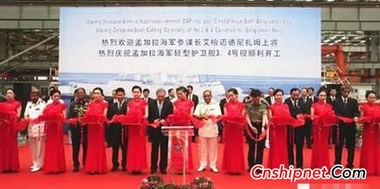 2016年8月9日,由武船集团为孟加拉海军建造的轻型护卫舰后续舰3、4号舰在武船双柳基地开工。开工仪式上,孟加拉海军参谋长尼扎姆·艾哈迈德上将启动钢板切割指令,为新舰艇割下第一块钢板。这两艘舰是继武船集团去年底向孟加拉交付两艘我国出口最先进轻型护卫舰后,签订的同型舰后续新订单。
