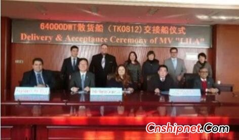 中航船舶代理、口岸船厂为希腊VERITAS船东集团建造的64000吨散货船LILA号签字交付。
