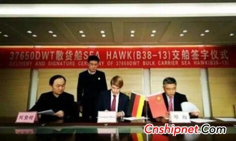 由中航船舶承接、中航威海为德国船东Reederei Roth公司建造的37650吨散货船SEA HAWK号(B38-13)签字交付。这是中航威海今年1月份交付的第二艘船。