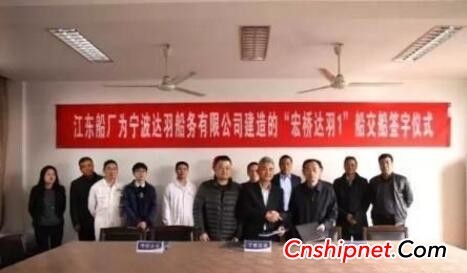 2017年3月29日,长航重工江东船厂为宁波达羽船务有限公司建造的首艘9800吨杂货船在该厂签字交船。
