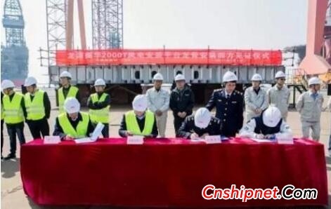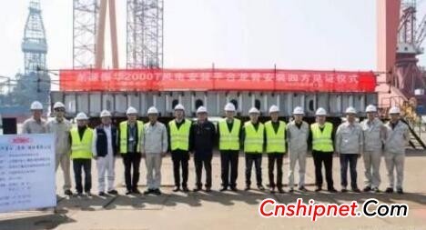 2017年3月9日上午,上海振华重工海工平台事业部举行龙源振华2000T风电安装平台龙骨安装四方见证仪式。龙源振华、振华重工、中国船级社大连分社、南通海事局的代表一同见证了平台龙骨安装,并签署了“四方见证”文件。海工集团生产咨询、事业部领导班子、项目组成员、各部门代表、分包商代表共同参加了见证仪式。