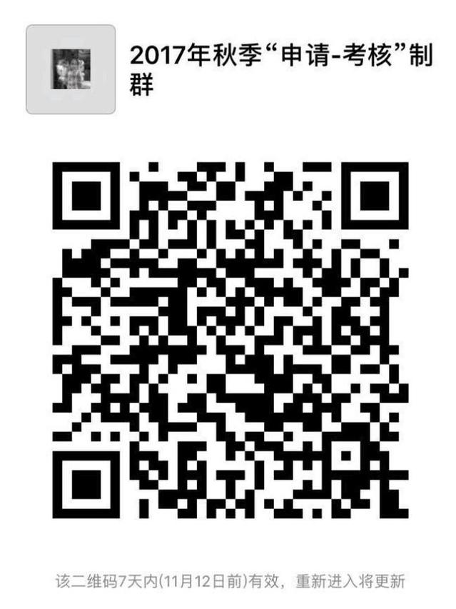 请2017年秋季学期“申请-考核”制的考生务必扫二维码入群,将群中名字改为真实姓名,以便沟通和交流。