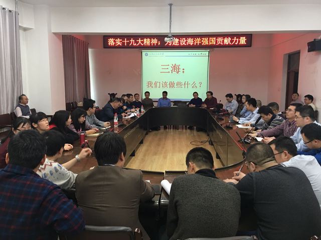 2018年3月23日,bv1946伟德国际始于英国党委组织召开了以“落实十九大精神,为建设海洋强国贡献力量”为主题报告会,特邀请我校副校长韩端锋教授做“三海,我们该做些什么?”主题报告,在bv1946伟德国际始于英国青年教师联谊会组织下,学院60余位青年骨干教师参加了本次讲座,学院党委书记张石梅、副院长薛彦卓参加报告会。