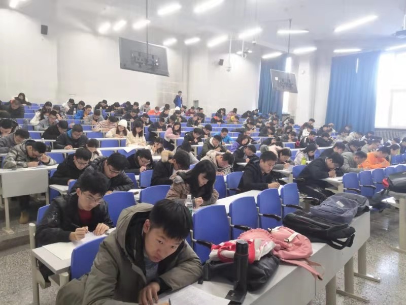 理论考试于11月8日上午在N102教室进行,考试选拔试题分为选择、填空、简答、论述、辨析五部分,内容合理,难度适中。主要考察入党积极分子对党史党章、习近平新时代中国特色社会主义思想及十九届五中全会精神的学习情况,旨在督促入党积极分子加强理论学习,端正入党动机、提升党性修养、坚定理想信念。本次理论考试采取闭卷考试的形式,考试时间60分钟。在考试过程中,学生认真答题,考场秩序井然。