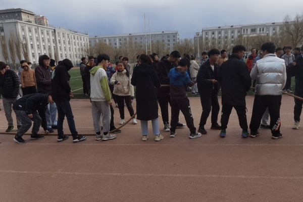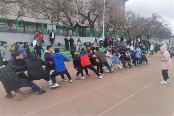 随着铿锵有力,此起彼伏的口号声,同学们咬紧牙关,身体拼尽全力向后倾倒,绝不将胜利轻易拱手相让。料峭春寒无法冷却同学们的热情,看台上的加油喝彩声一浪高过一浪。