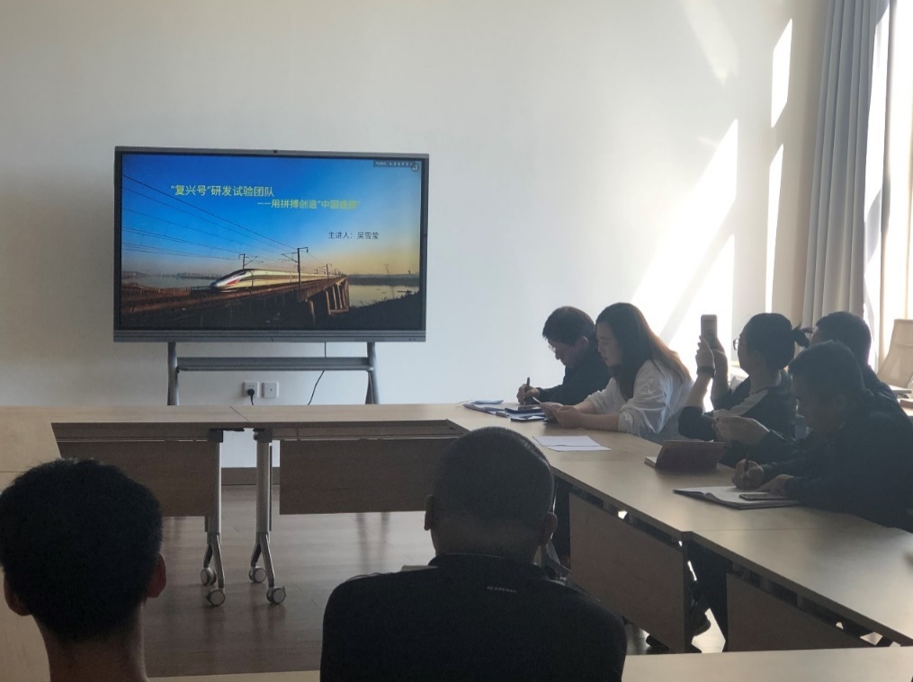 图书馆党总支第三党支部的吴雪莹老师以“复兴号研发试验团队——用拼搏创造中国制造”为题,讲述了复兴号研发试验团队的故事。该团队敢为人先,独立自主,创新研究,掌握了核心技术制定了中国标准,形成了我国完备详实的高铁研发体系,让中国的高铁水准走在世界前沿。团队人员在研发过程中不怕苦不怕累,精益求精,一切为了提升高铁质量,给予乘客最好的体验感。这种敢于钻研,不畏艰苦的精神值得每一位共产党人学习。