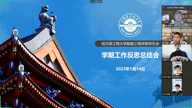 1月14日,船舶学院学生会于线上召开学期工作反思总结会。本次会议由学生会执行主席邢津浩担任主持人,学生会主席团成员李承霖、孙久然与各部门部长参加本次会议。