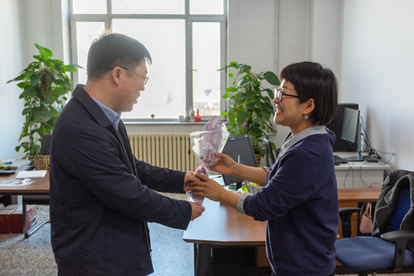 在第113个“三八”国际劳动妇女节到来之际,3月8日上午,学院党委书记李荣生、学院副书记苏智、副院长田宇欣走访慰问学院女教工,并与女教工进行亲切交谈,询问她们的近期工作、生活等情况,为女教工送去节日的问候和祝福。
