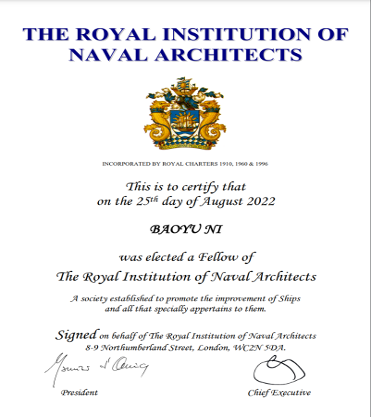 当选英国皇家造船工程师学会会士