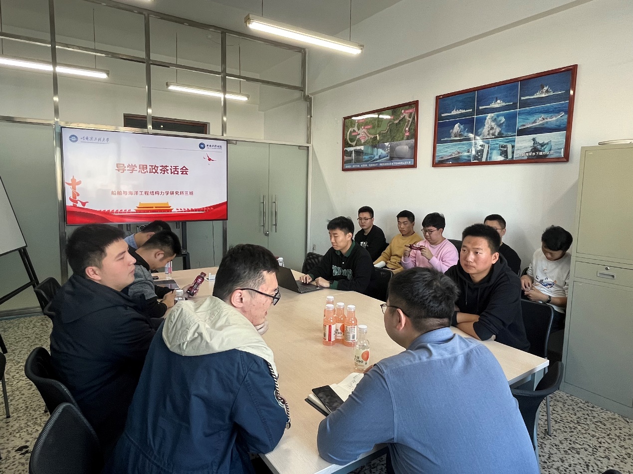 导师是研究生培养的第一责任人,导师在学术指导和价值塑造方面对学生有较大影响力,为增强以导师和辅导员为主体的研究生思想政治教育队伍,切实加强研究生思想政治教育,灵活开展导学思政育人活动,船舶与海洋工程结构力学研究所三班10月27日举办了“导学思政茶话会”活动,船舶与海洋工程结构力学研究所三班老师熊骋望教授出席会议,许流逸、唐皓、梁昊等多位学生代表参加了本次活动。