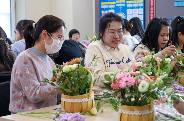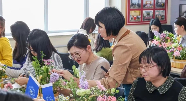 活动由学院工会主席、副院长田宇欣主持。他代表学院工会向各位辛勤工作、默默奉献的女教工献上诚挚的祝福和崇高的敬意,希望各位女教工通过此次插花沙龙活动,放松身心、陶冶情操,以更好的状态享受生活、投入工作。