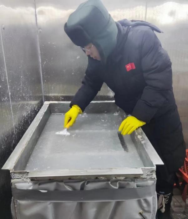 我的研究方向为极地装备与技术领域中的冰水池试验技术及海冰数值方法。在研究海冰的物理、力学特性及船舶等结构物与冰相互作用时,开展适当的模型试验十分必要,有助于在模型尺度上了解其力学特性及作用过程,进而为数值计算提供参考。
