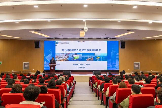 王俊利结合自身经历分享了中国船舶工业的发展以及我国造船工业技术发展带动的海洋新兴产业,深刻分析了当前中国船舶工业的独特性和优势要素,对未来绿色、智能技术引领产业创新发展提出了展望,并指出了我国船海产业发展面临的问题与挑战。随后介绍了船舶行业人才培养体系及成长路径,对同学们的未来发展做出了指导并提出了期望。