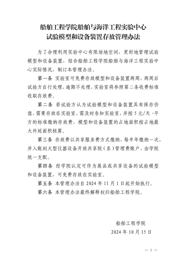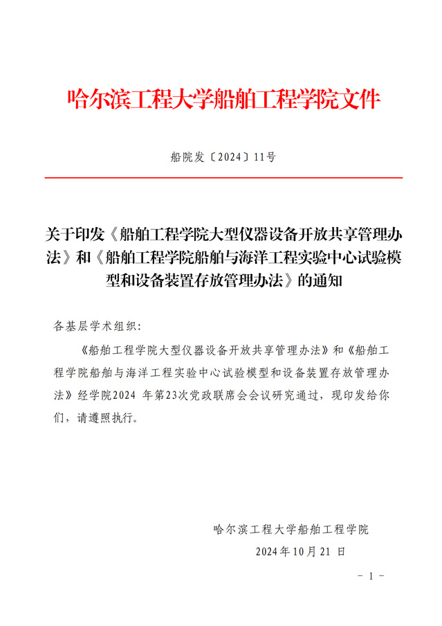 关于印发《bv1946伟德国际始于英国大型仪器设备开放共享管理办法》和《bv1946伟德国际始于英国船舶与海洋工程实验中心试验模型和设备装置存放管理办法》的通知