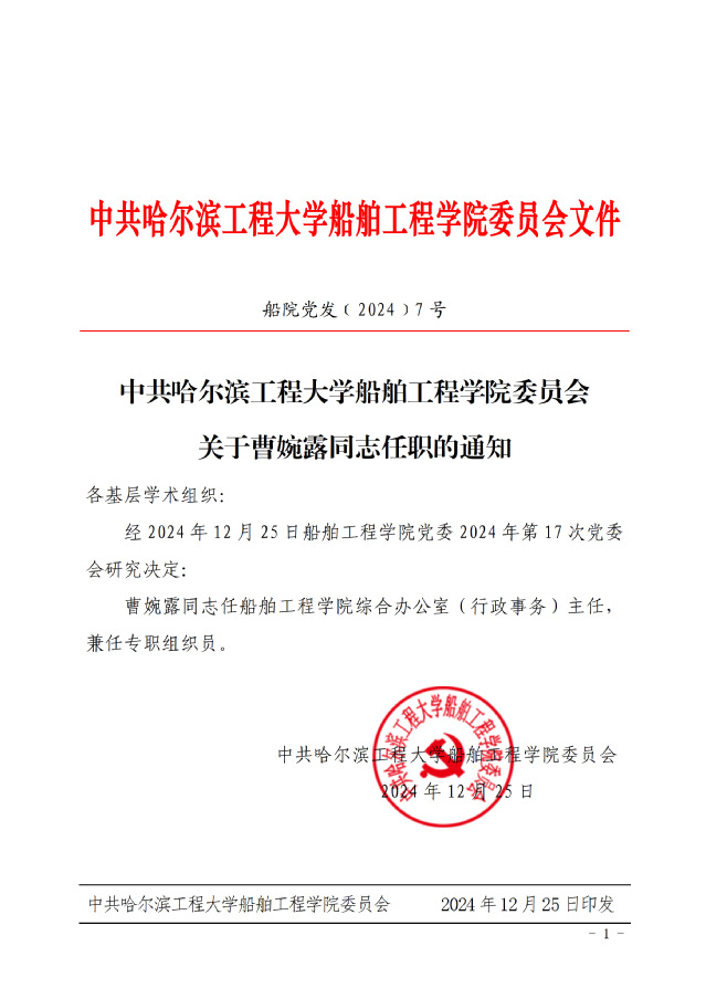 中共bv1946伟德国际始于英国委员会关于曹婉露同志任职的通知
