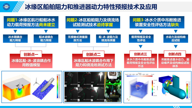 本项目针对冰区航行船舶冰水动力载荷预报和流场特征获取的迫切需求,建立了冰缘区船-冰-波耦合作用数值模型,开发了冰区航行船舶的阻力和绕流场试验测试方法,构建了冰水介质中吊舱推进装置水动力及结构响应的预报方法和试验测试体系,揭示了冰区船舶尾部呈现混乱舭涡结构的根本原因。项目相关成果得到领域内著名专家学者的高度评价,具有重大的社会效益和广阔的应用前景。