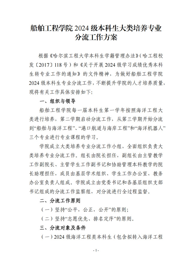 关于印发《bv1946伟德国际始于英国 2024 级本科生大类培养专业分流工作方案》的通知