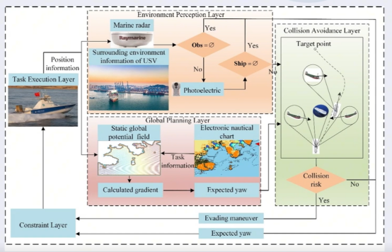 该项成果针对水面无人艇在高海况、雨雾、颠簸等恶劣环境条件下的作业难题,设计了基于运动信息的时空统一基准,深度融合多源感知、快速决策、精准控制,研发了适应高航速及复杂环境的“聪慧”控制系统,有效提高了无人艇的自主水平和智能化程度。
