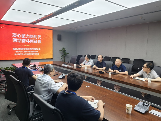 19日下午,在与第七〇一研究所四室的党建联建共建活动中,双方围绕党的建设工作经验和科研合作事项进行了全面研讨。第七〇一研究所四室党委书记谢承福分享了研究所探索党建与业务相融合方面的做法与经验。双方希望以党建联建共建为纽带,深化高校与科研院所合作,共同推动科技创新和人才培养,为我国船舶事业高质量发展贡献力量。
