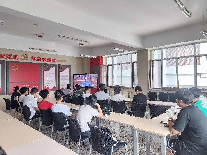 党委委员、院直党支部、教师代表在船海楼315会议室集中收看大会直播。