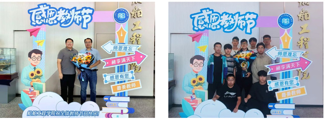 学院在船海楼大厅设置了漂亮的合影背景,供师生合影留念,记录下师生间浓厚的情谊,也为这个教师节增添了一丝温馨又难忘的色彩。