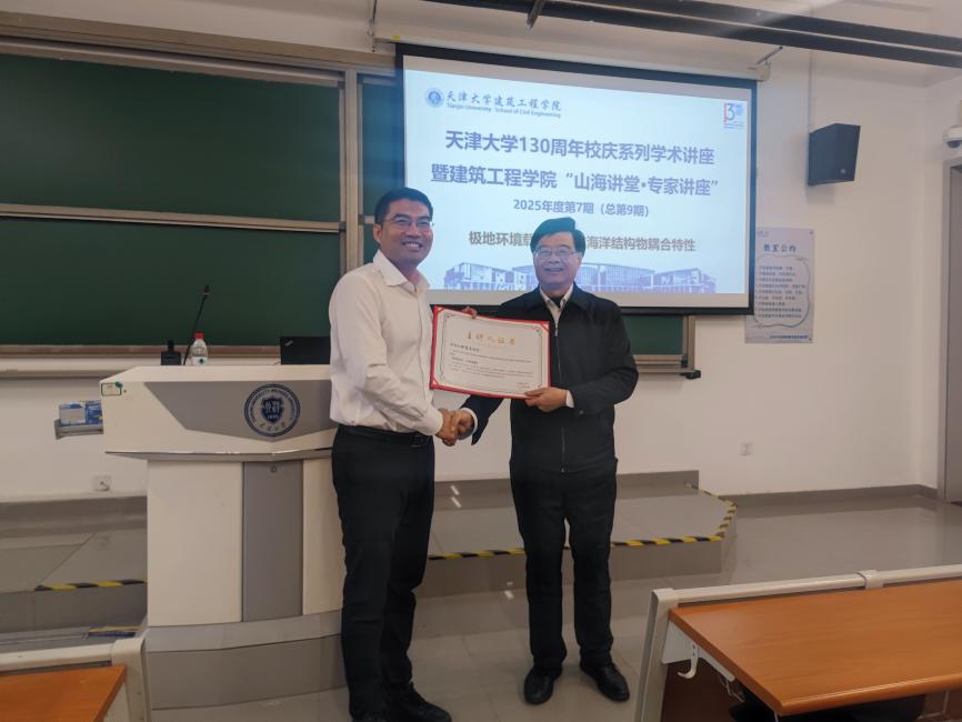 座谈会后,倪宝玉做客“山海讲堂·专家讲座”,向学院师生作了关于“极地环境载荷及其与海洋结构物耦合特性”的学术报告,同时介绍了学院人才需求及引进政策。