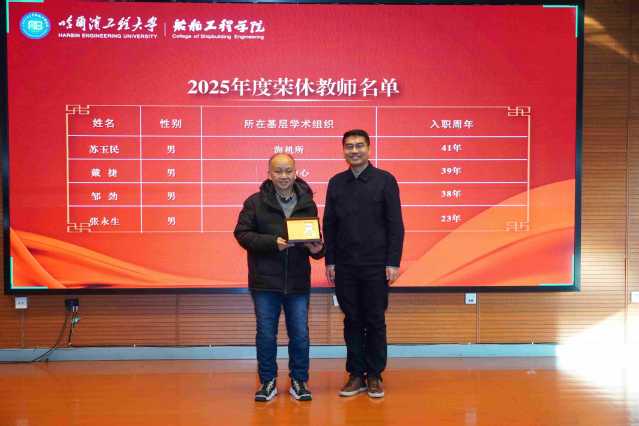 李晔宣读了2025年新入职教师、新进博士后名单,并对新进教师表示热烈欢迎,同倪宝玉一起为其佩戴院徽;宣读了2025年荣休教师名单,并向他们为学院发展、人才培养与文化传承所付出的卓越努力致以诚挚谢意。